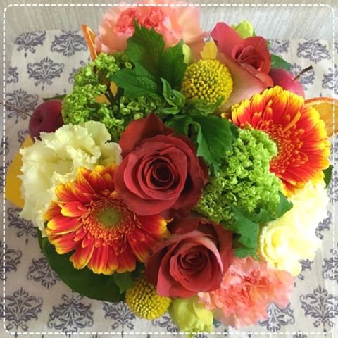 明るい色合いのアレンジメントで大きすぎないのが良かったので