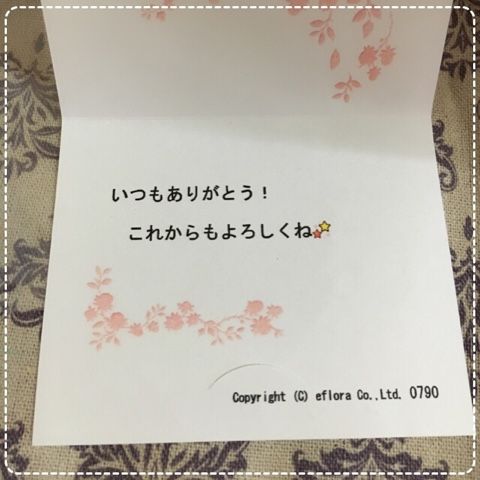 メッセージカードは、注文時に設定しておいたメッセージが印刷されてきます。